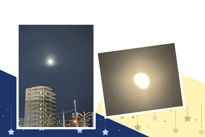 帰り際にボヤけていますが皆既月食の始まりをみることができました。これから春分の日まで内なるものを静かに見つめ直していく時期だと感慨深くお月様🌕を鑑賞していました